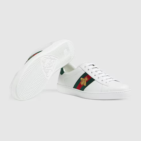 O Gucci Ace é um tênis de couro com design clássico e detalhes marcantes, como a faixa Web lateral e bordados icônicos. Inspirado no estilo esportivo dos anos 70, une sofisticação e versatilidade, perfeito para looks casuais ou elegantes.