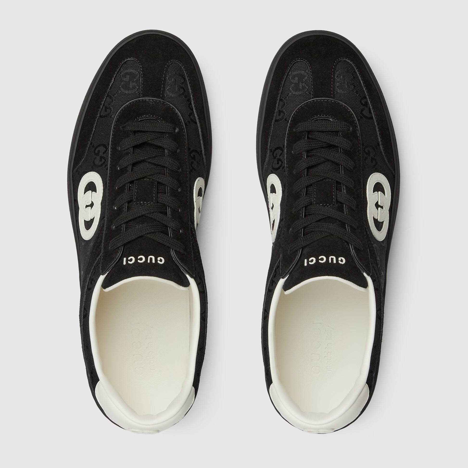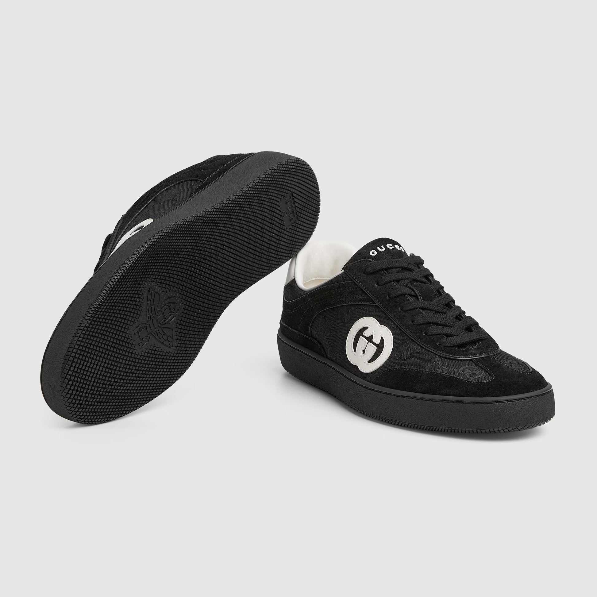 Inspirados nos tênis de basquete retrô dos anos 70, estes tênis são definidos pelo logotipo G entrelaçado. Feito em camurça macia, este design apresenta um detalhe de inserção em nylon GG.