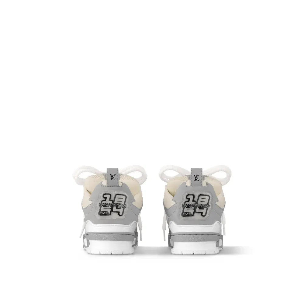 O tênis LV Skate é revisitado nesta estação em um mix de materiais, incluindo malha tecnológica. O design remete aos tênis de skate dos anos 90, trazendo um forro em tecido tecnológico estampado com o Monogram e acolchoamento extra, para o máximo de conforto. Este modelo bicolor apresenta uma Flor do Monogram na lateral e três no solado.