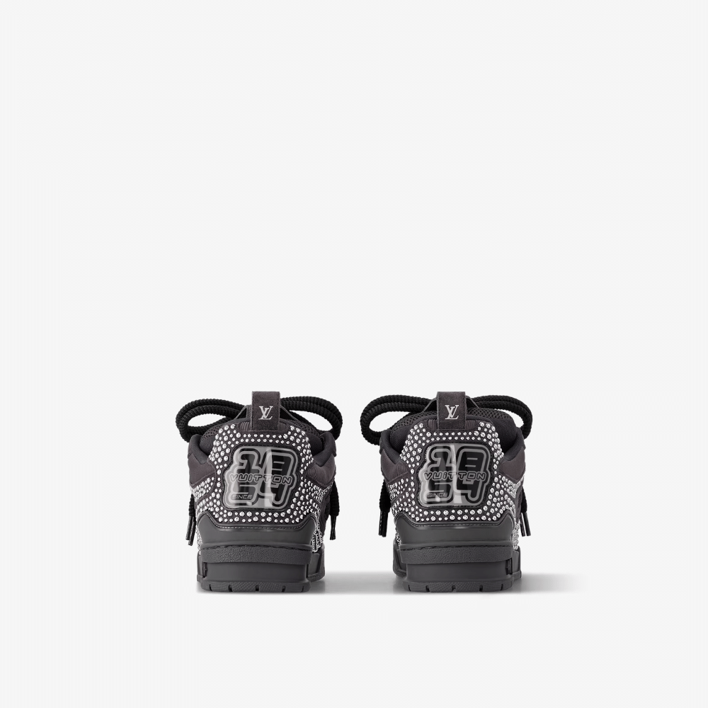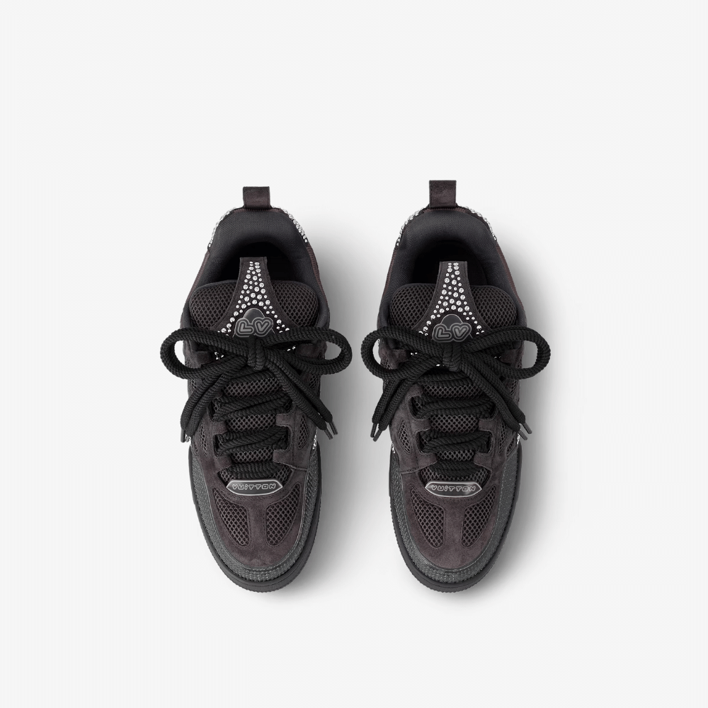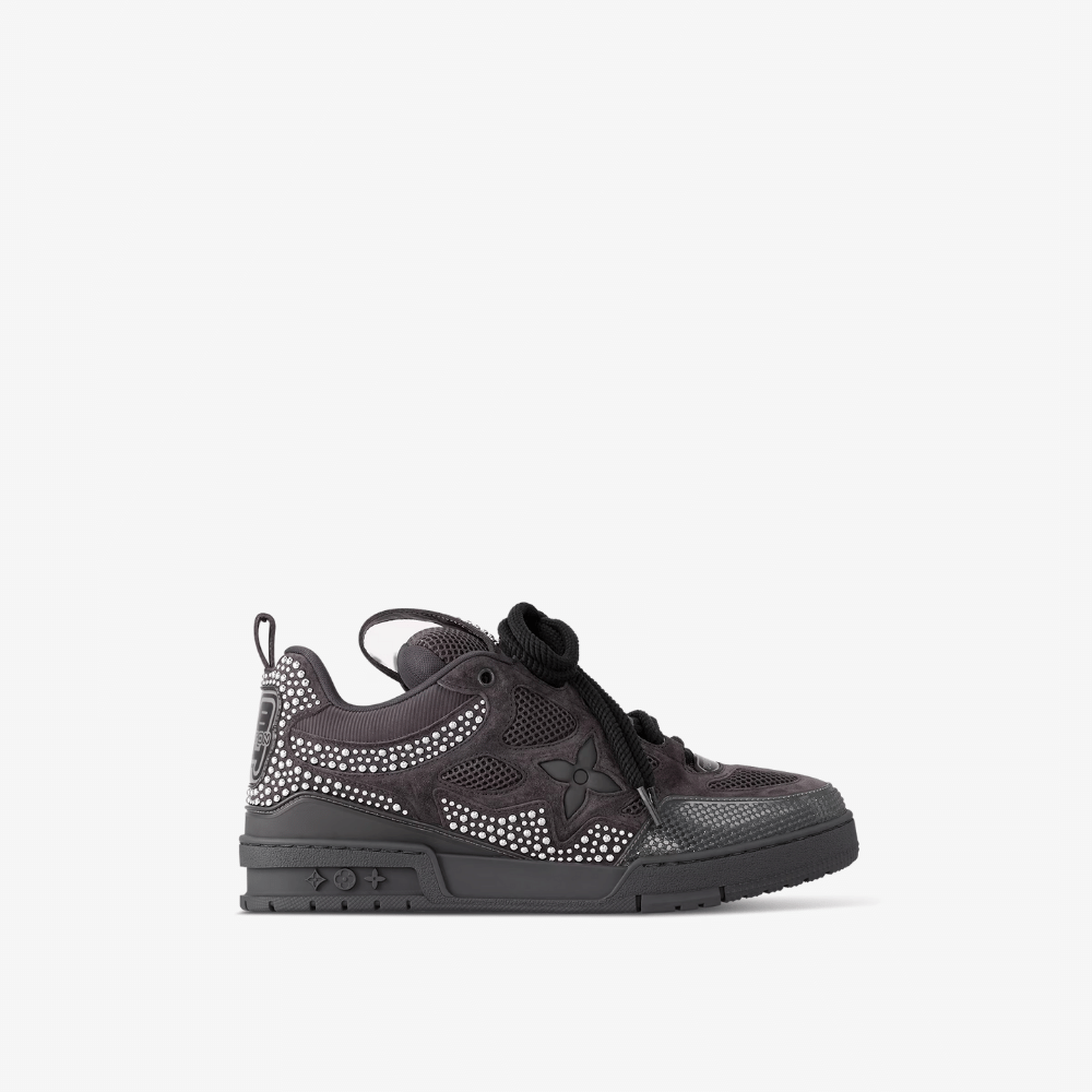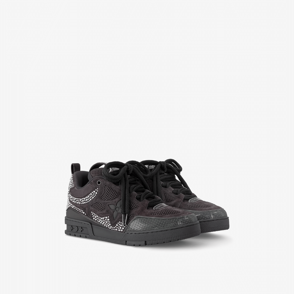 O tênis LV Skate é revisitado nesta estação em um mix de materiais, incluindo malha tecnológica. O design remete aos tênis de skate dos anos 90, trazendo um forro em tecido tecnológico estampado com o Monogram e acolchoamento extra, para o máximo de conforto. Este modelo bicolor apresenta uma Flor do Monogram na lateral e três no solado.