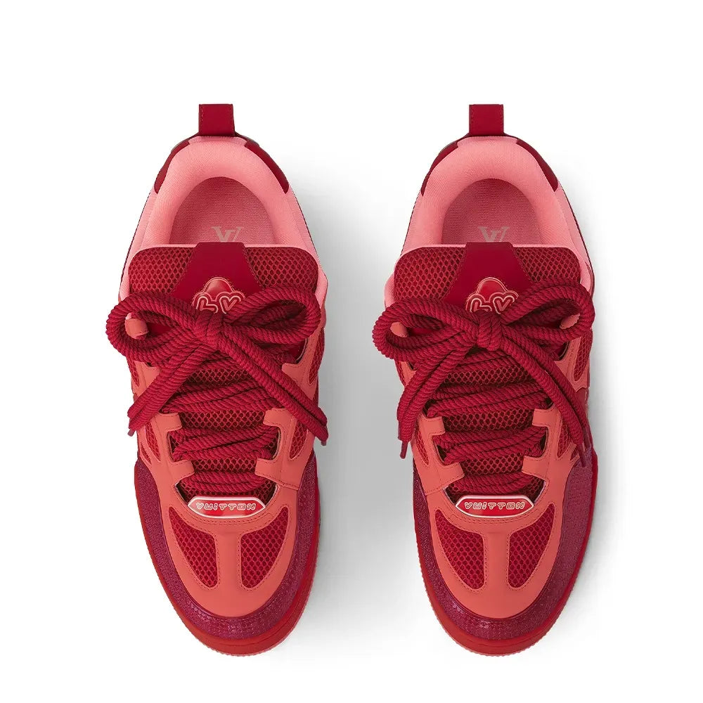 O tênis LV Skate é revisitado nesta estação em um mix de materiais, incluindo malha tecnológica. O design remete aos tênis de skate dos anos 90, trazendo um forro em tecido tecnológico estampado com o Monogram e acolchoamento extra, para o máximo de conforto. Este modelo bicolor apresenta uma Flor do Monogram na lateral e três no solado.