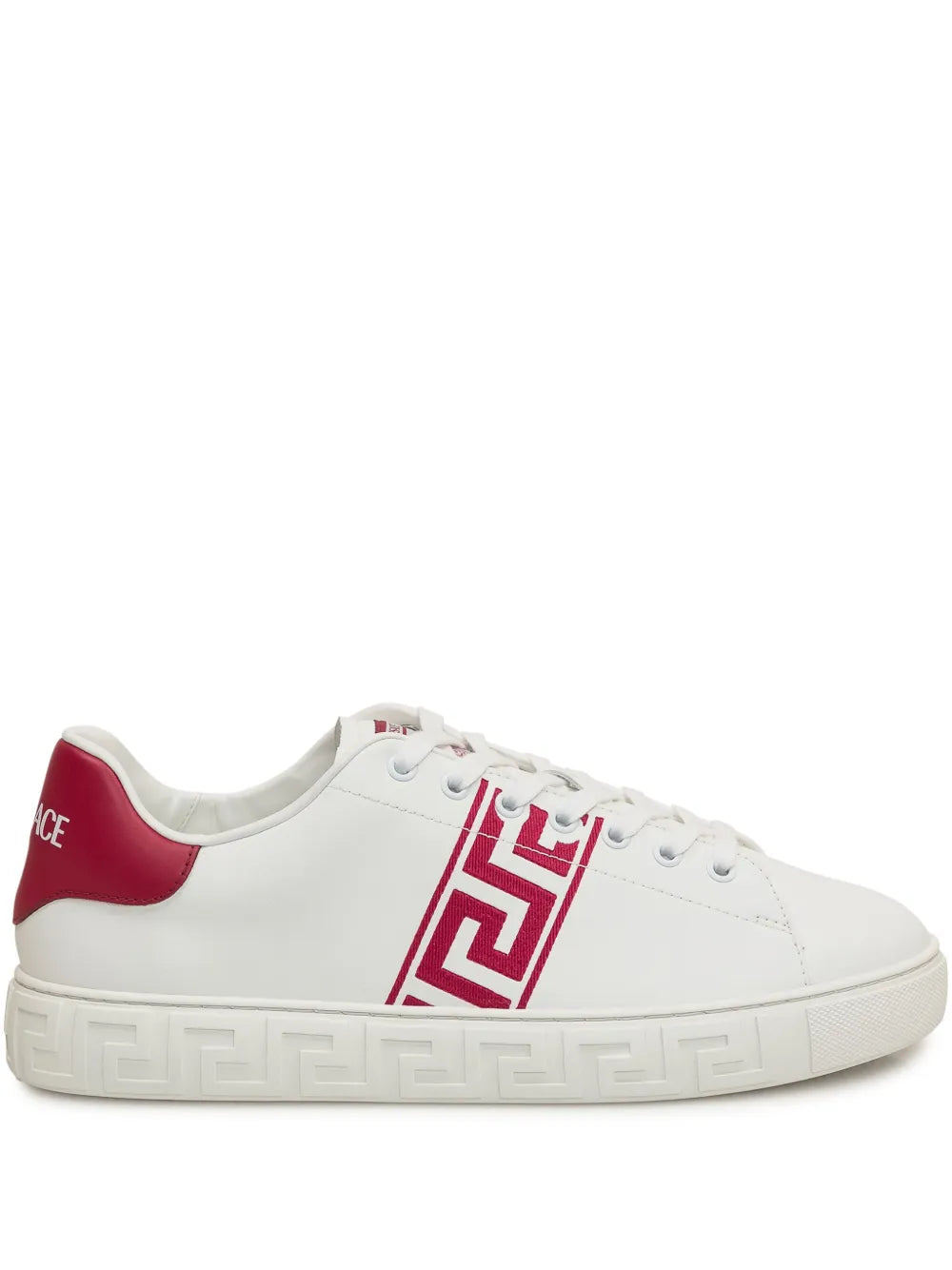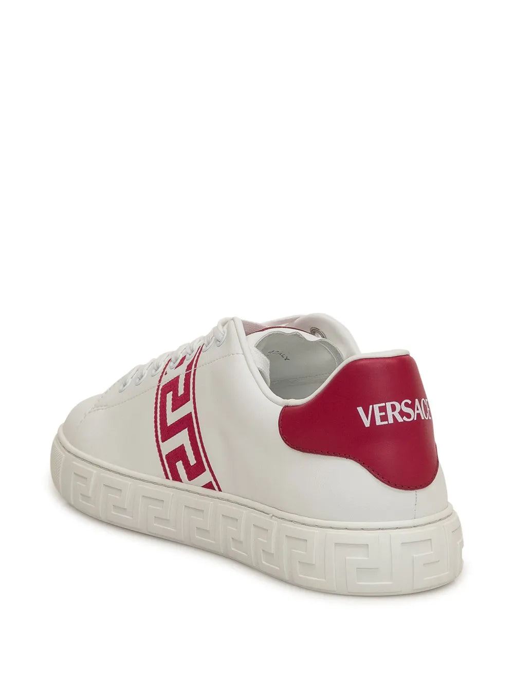 O Versace Greca é um sneaker de cano baixo com design clean e sofisticado. A característica mais marcante é o motivo Greca, inscrito de forma gravada na sola ou aplicado como bordado ou estampa nos cabedais. Esse elemento traz a essência do DNA Versace, reinterpretando sua simbologia clássica com modernidade.